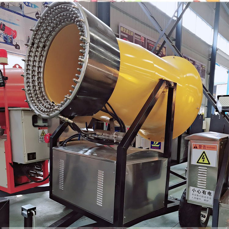 ??造雪机的工作原理,基本是模仿 雪的形成过程,首先由压缩机产生 压空气送到核子发生器的喷嘴处,然后风扇负责把雾化的水雾吹到空气中抛散,核子器在空气和水形成的比例以后生成雪核,雪核在空中遇冷形成雪花。核子器是造雪机的核心技术。现代新型的造雪机已经可以造出接近于 雪的小颗粒状雪花。