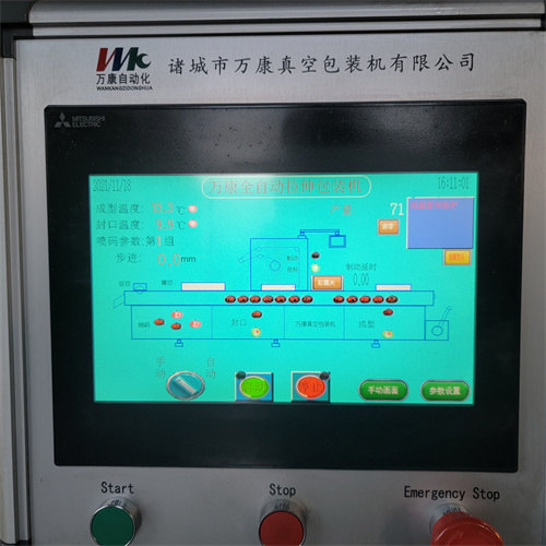 1、 成型部分:采用4轴杠杆垂直独立升降系统,带有自锁功能,升降平稳,轴承使用德国易格斯产直线轴承,升降平稳,无噪音,免润滑,加热板采用凹凸设置成型无横筋褶皱,成型方式采用德国原装进口BUSCH063真空泵加负压储气罐抽气系统,高速预热快速成型,自带水循环定型冷却系统,拉伸均匀到位,提高片膜阻隔性,厚度比传统成型方式提高百分之30。