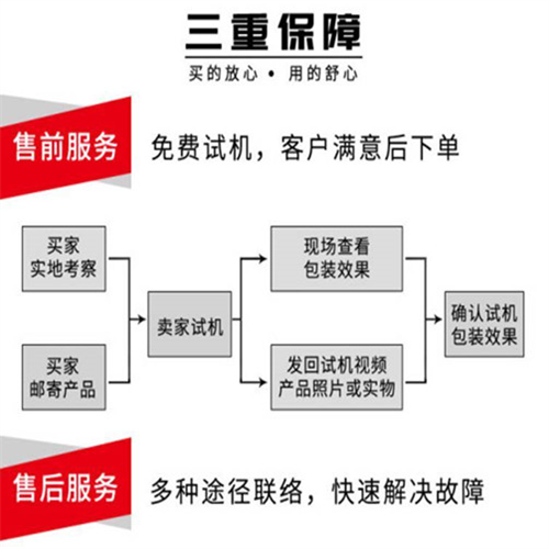 4、 设备配置系统:本机采用日本三菱控制系统,系统带有自动报警功能,每个部位设有保护开关以及防护罩,保护操作人员人身安全,发生故障,自动感应报警,停机,人机界面会显示、分析故障原因,便于维修人员维护保养,具有故障记忆复位功能,当设备发生故障停机,故障排除后,设备会自动记忆故障前的程序,完成之前的程序动作,要使用过程中,可以为用户节省时间、节省拉伸膜、降低使用成本,提高效率、(我公司独有)。