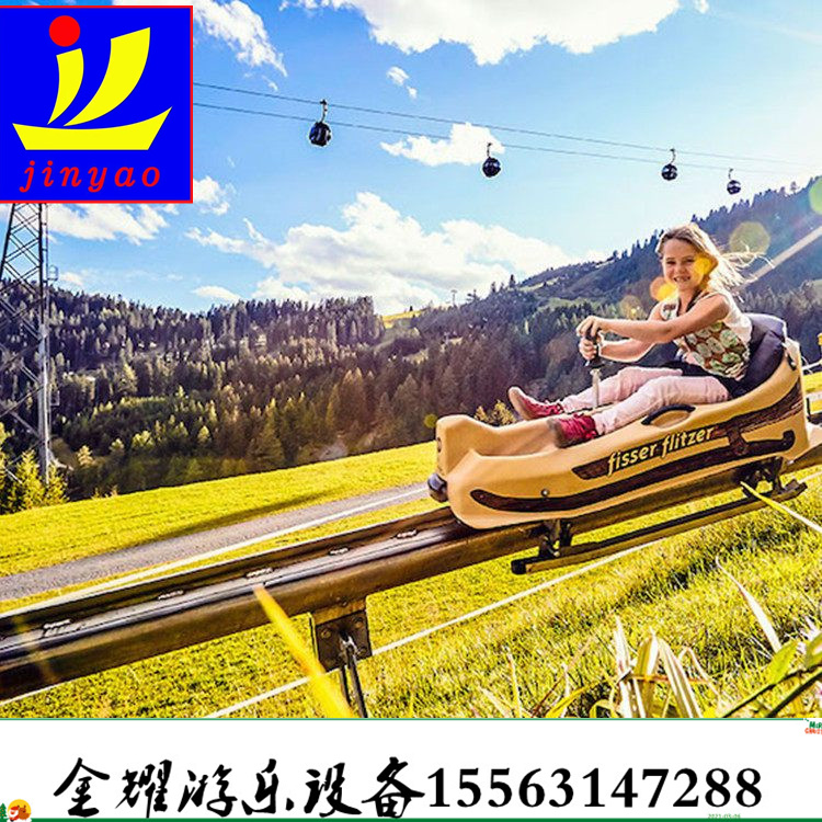 网红无动力单轨滑车根据场地的自然落差来设计轨道,乘客可以自由控制小车下滑,从不同的角度观赏整个景区的景点。