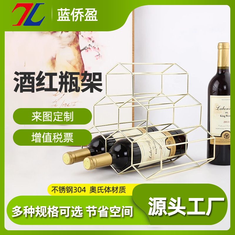 工厂定制北欧金属蜂巢红酒架客厅酒吧展示架创意铁艺电镀红酒架
