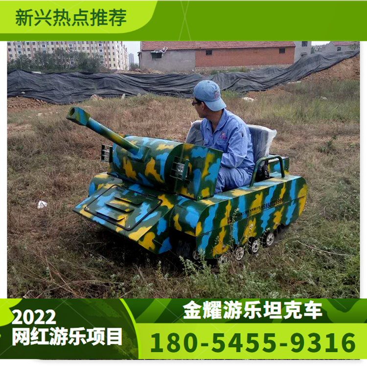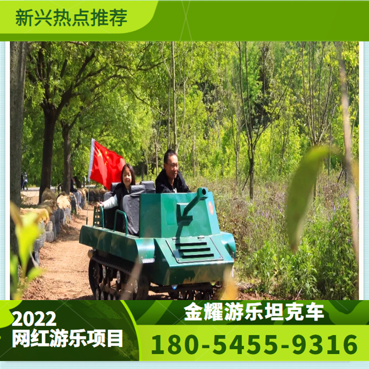 自然乘坐于游乐坦克驾驶位,将带调整到合适长度,左右卡扣对插锁住,启动游乐坦克,双手扶稳游乐坦克驾驶方向控制器,采用推拉式档杆,操作简单方便。