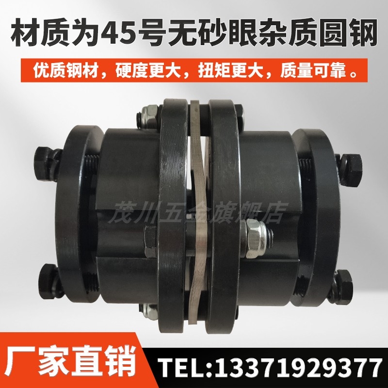 特点:偏心允许范围大,拆装迅速。无噪音,磨损,无滑动、摩擦转动部件,可降低能量损耗;重量轻,适合高速运转场合;轴套连接方式采用胀套无间隙联结,可用于伺服定位系统。中间的弹性元件采用进口不锈钢材质,强度高,使用寿命长,并可以在腐蚀环境中使用。