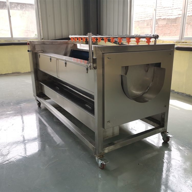 3、毛刷式。是通过刷毛与水中物料的直接接触,使物料表面的污物刷除洗净,该类清洗方式适用于马铃薯、萝卜等根茎类蔬菜 的清洗。