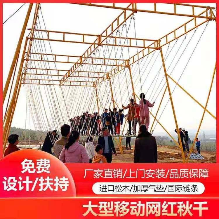 网红多人秋千荡桥就是少见的超好玩的无动力游乐设备。无动力游乐设备根据客户的需要进行个性化设计、生产。无动力游乐设备色彩鲜艳、不易褪色、度、防静电、耐磨、耐晒、耐老化、防裂,而且一般无动力游乐设备结构安全耐用,设计巧妙、色彩搭配和谐,塑料的各个部件的巧妙结合,儿童游乐设备给孩子带来安全、欢乐和活泼的感受。安装在游乐场、景区,庙会,公园、能够在有限的空间里营造出无限的欢乐和吸引力。无需电力等外部能量提供支持,仅依靠设备自身与使用者的互动,相对于科技机械类设备,无动力游乐设备的采购成本及后期运营成本都相对较低。但是由于其具有游乐、运动、趣味、健身等,广受儿童喜爱的优点却收益可观,无动力游乐设备是性价比极高的规划。网红多人秋千这种无动力大型户外游乐设备是很有趣很好玩的一款返璞归真的游乐玩具,人们在上面玩耍都可以体验童年时光的快乐和无忧!是很多人追求的一种简单而美好的幸福快乐
