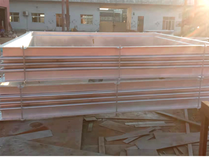 矩形非金属补偿器是由复合非金属和两个可与相邻管道组成设备相连接的接管(或法兰)及隔热材料组成的挠性部件,蒙皮主要运用于补偿输送微压粉尘气体、烟、煤气及其他气体的管道和设备系统因温度、机械振动及基础下沉引起的位移。