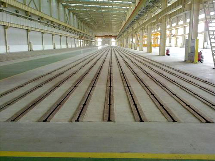 4、为了防止地轨整体变形,使用完毕后,要将工件从铸铁地梁上拿下来,避免工件长时间对地轨重压造成的变形。