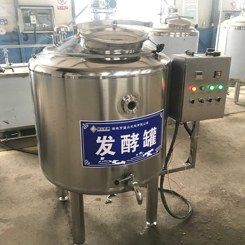 酸奶一般是以牛奶为原料, 经乳酸菌发酵而成的一种具有较高营养价值和特殊风味的乳制品, 是具有一定保健作用的食品。发酵罐指工业上用来进行微生物发酵的装置。其主体一般为用不锈钢板制成的主式圆筒,其容积在1m3至数百m3。在设计和加工中应注意结构严密,合理。能耐受蒸汽灭菌、有一定操作弹性、内部附件尽量减少(避免死角)、物料与能量传递性能强,并可进行一定调节以便于清洗、减少污染,适合于多种产品的生产以及减少能量消耗。