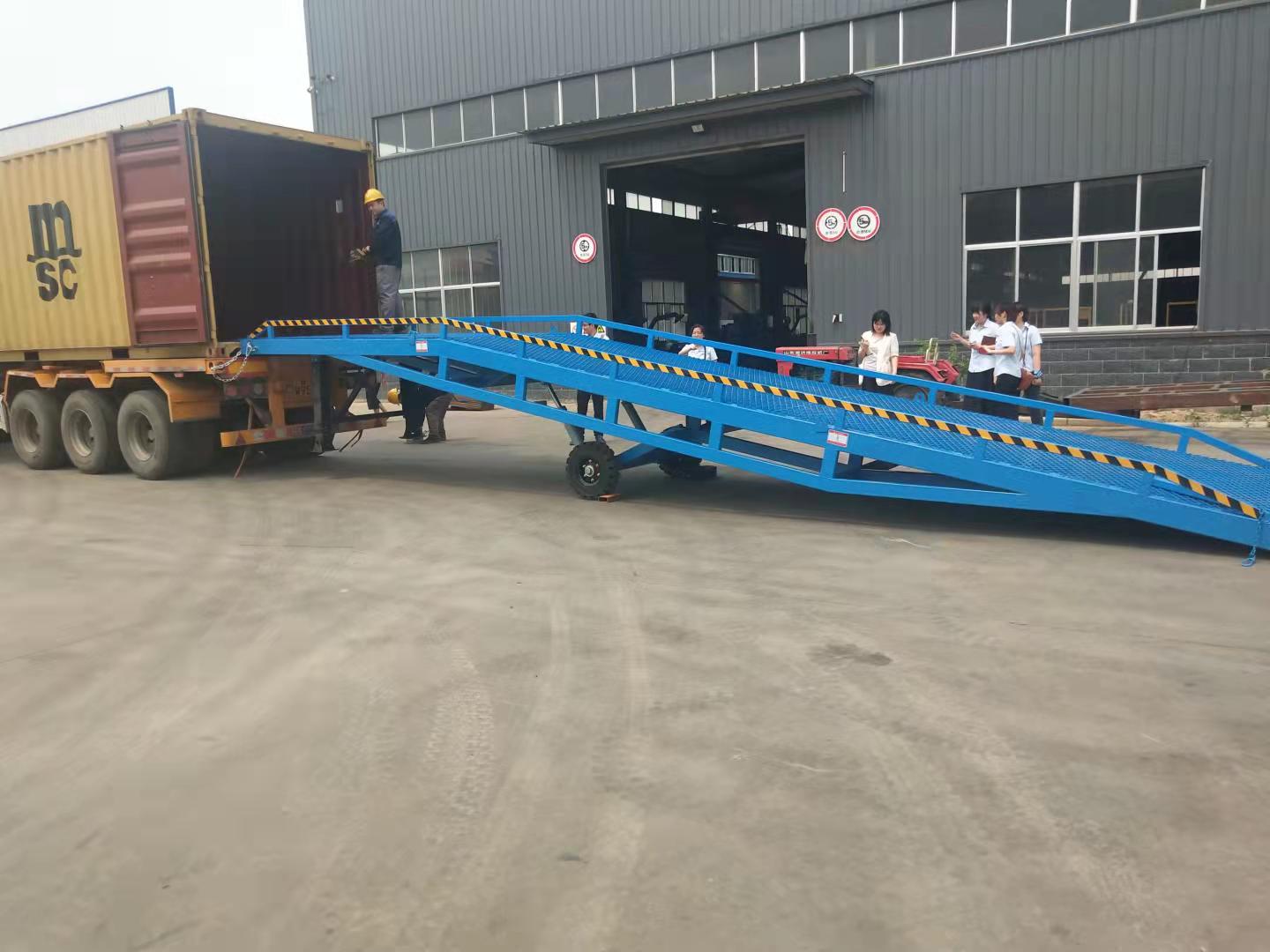 移动式液压登车桥按承载能力分为:6、8、10、12、15吨,它广泛应用于无装卸设备的货台及流动装卸场所反,是与叉车配合使用的货物装卸辅助设备,可根据汽车车厢的高低任意调节高度。借助该设备,叉车能直接驶入汽车车厢内部进行批量装卸作业,只需单人操作,不需动力电源,即可寮现货物的安全快速装备卸,既能使您减轻劳动强度,又能成倍提高装卸作业效率,加快物料流通速度,获取更大的经济效益。