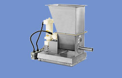 | 产品描述 通过静态秤称量完整的给料系统(料仓、给料机和散状物料)及通过变速电机或电振机控制散关物料的卸料流量。 物料(通过螺旋、振动管或槽)从系统卸下,将按每个单位时间(dv/dt)测量的"失重"与所需给料量(预设值)进行比较,实际(测量)的流量与期望的(预设)流量之间的差异会通过给料控制器发生纠正信号,该控制器能自动调节给料速度,从而在没有过程滞后的情况下保持精确的给料量。 当料仓中测量的重量达到料仓低料位(重新加料)时,控制器将给料系统按容积给料进行控制,然后料仓快速重新装料(手动或自动),失重控制器重新动作。 在批称量失重系统中,设计与连续失重系统相似,然而,给料(批量) 循环最终重量的精度要比实际的给料量控制更高。 控制器通过向变速驱动器提供高给料信号以完成快速给料,然后转换到低给料控制信号用于在批量结束时精确控制。 |