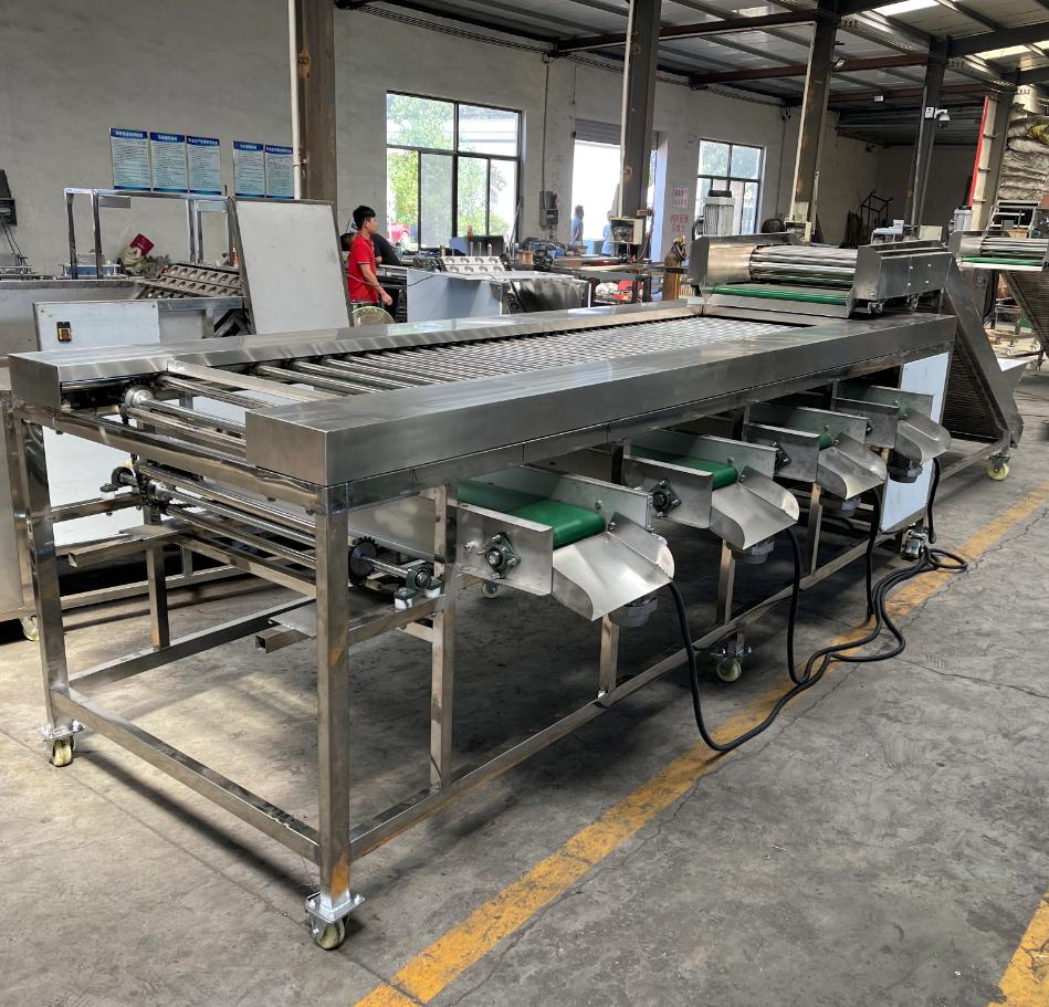 滚杠分选机采用变径间隙的形式对圣女果、土豆、红薯、洋葱、芋头等进行大小的分选,分选等级根据客户要求定做,产量大,效率高,设备整体不锈钢材质,经久耐用!