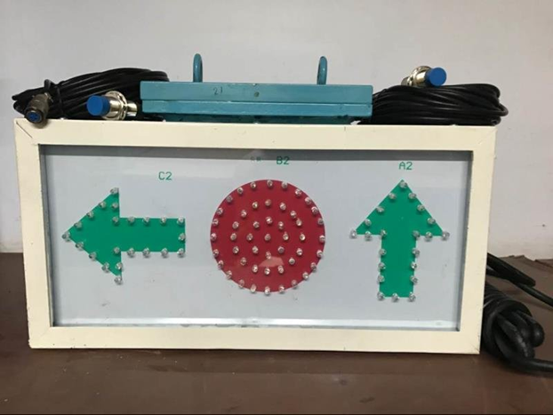 岔位指示器为隔爆兼本质安全型设计,由隔爆腔、本安腔、电源板、主机板、显示板、防水喇叭构成。隔爆腔与本安腔通过隔爆型组合接线端子连接,壳体两侧为两个进线装置,一个与隔爆腔相连,一个与本质安全腔相连。内腔为隔爆腔,内装有主电路板及接线端子。外腔为本安腔,装有防水喇叭、显示板。