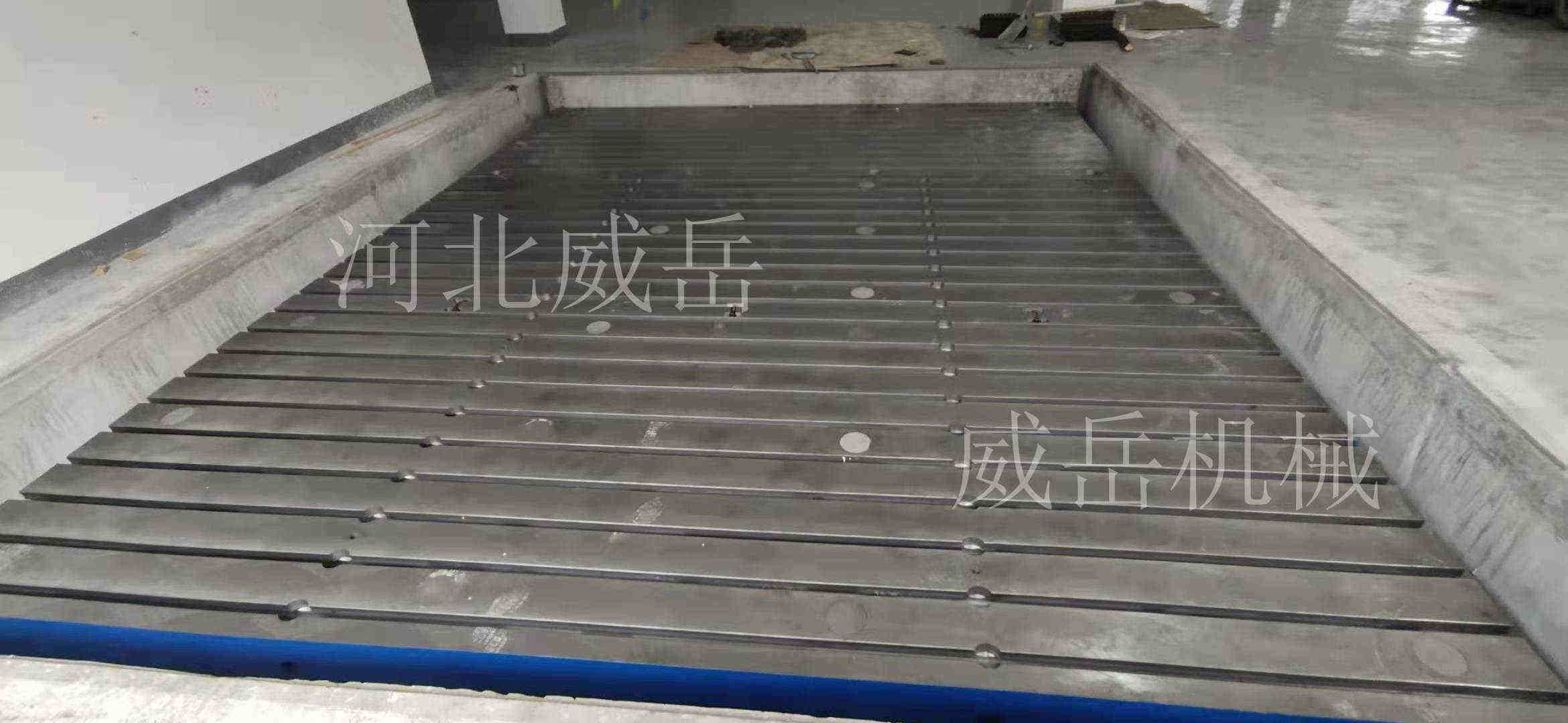 T型槽铸铁平台是划线、测量、铆焊、工装工艺不可以缺少的工作台,也可以做机械试验台等等。T型槽铸铁平台用于各种检验工作,如 测量用的基准平面,各种机床机械的检验测量,检查零件的尺寸精度、行位偏差,并作出划线。