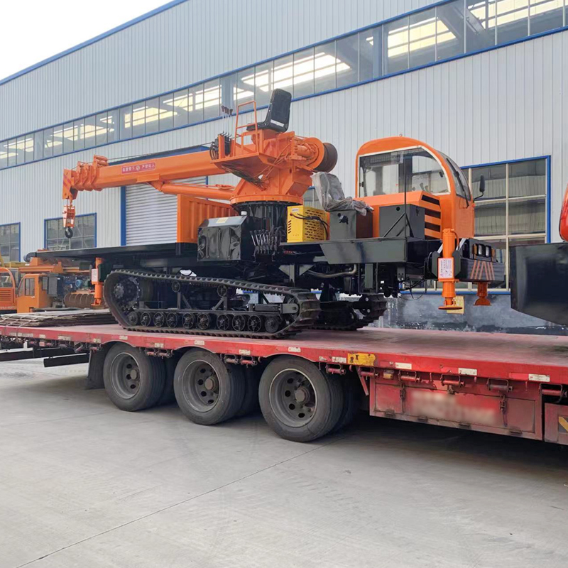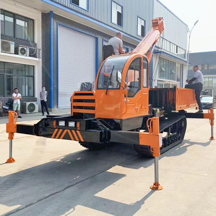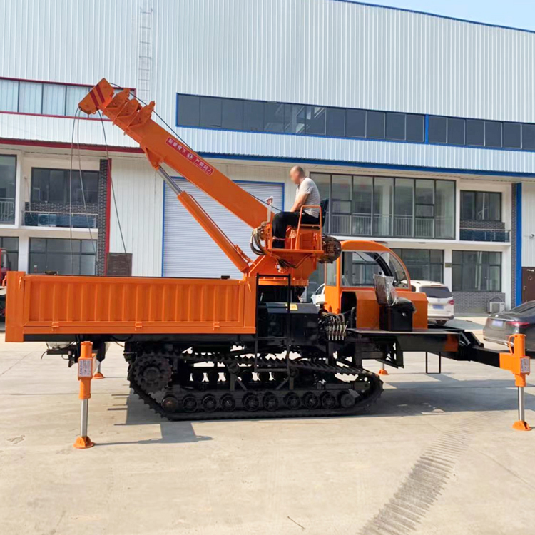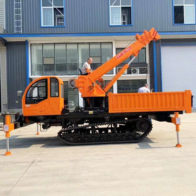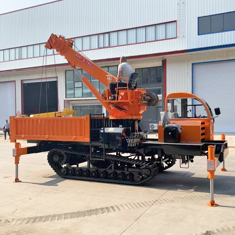 履带随车吊是用橡胶履带底盘制作的一款小型随车吊,是专为山地、水田、沙漠、丘陵等各种复杂地形的短途运输而设计制造的一款随车吊。该机具有动力强劲,操作方便,行走稳定,爬坡能力强等特点。