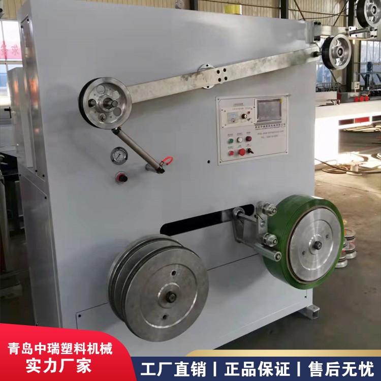 设备介绍:1. 塑化均匀、产量高、能耗低。2. 螺杆参数,设计合理,根据不同的原料,做不同的制品,螺杆有不同的长径比和结构,满足不同客户的需求。3. 采用PLC智能控制,人机界面大屏幕显示屏易于监控,方便了解加工和机器状态。4.此打包带的收卷部分:两种收卷机自选伺服收卷机和力矩电机收卷机可自选。