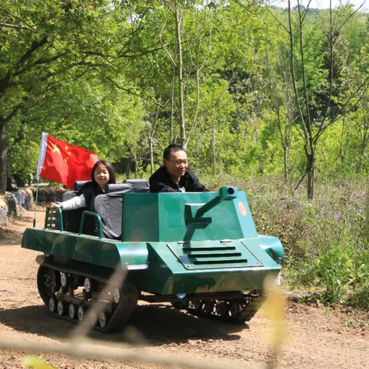 3、游乐坦克车是属无级变速,左右操纵杆转向,右脚是油门。油门幅度越大,车速越快。初学者请务必放慢速度,上车请系好安全带,有问题可联系工作人员学习指导。