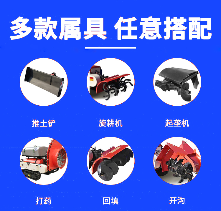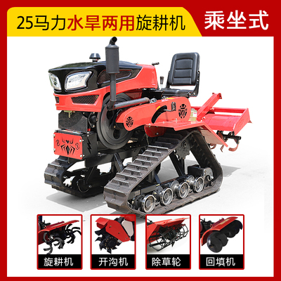 履带旋耕机,又叫履带式旋耕机,履带式拖拉机,一机在手,农活无忧!一机多用,降低人力,履带旋耕机优势在于:履带设计不受地形影响,原地360度转弯转向,通过性好!后挖可随意拆卸,后动力输出,三点悬挂,可与所有轮式拖拉机农具通用,打造新农人!