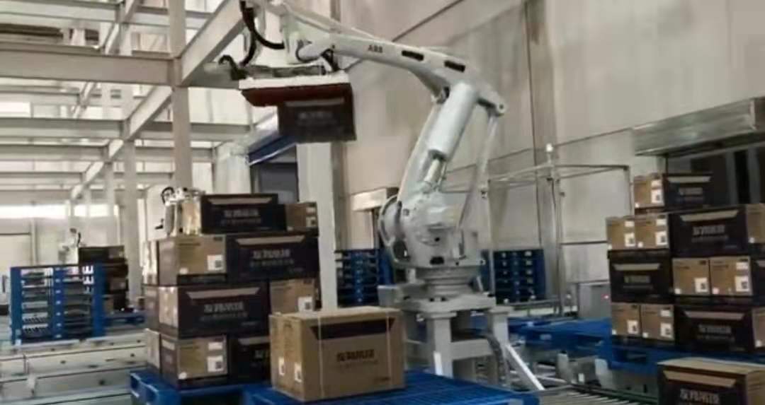 该淀粉面粉码垛机器人选用工业机器人领域高速伺服马达,为机器人提供了强劲动力支持;针对码垛作业的动力学模型,精心设计、反复验证和优化的机械结构为机器人提供了自由、灵活和健壮的躯体;研发的控制系统和成熟的运动控制算法,使机器人充分发挥其动力系统的每一分性能,动作自然、流畅而优美,在其作业范围内的任意路径动作时能达到速度,定位精度和轨迹精度能达到准确精度。
