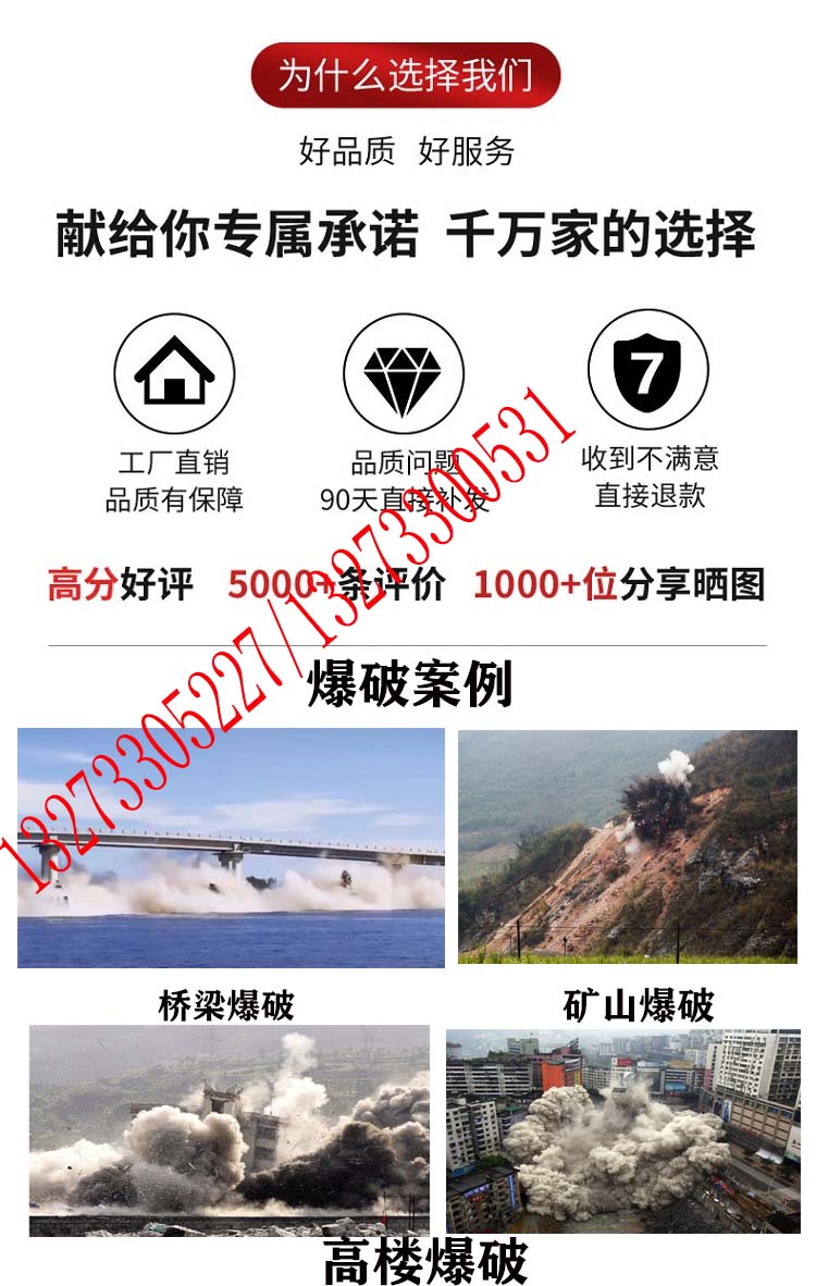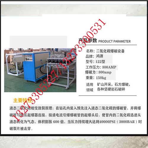 当微电流通过高导热棒时,产生高温击穿安-全膜,瞬间将液态二氧化-碳气化,急剧膨胀产生高压冲击波致泄压阀自动打开,被致裂物品或堆积物受几何*当量冲击波向外迅猛推进,从起暴至结束整个过程只需0.4毫秒,且是低温下运行,与周围环境的液体,气体不相融合,不产生任何有害气体,不产生电弧和电火花,不受高温、高热、高湿、高寒影响。在井下致裂时对瓦斯具有稀释作用,无震荡,无粉尘。二氧化-碳属于惰性气体非易燃易暴物质,致裂过程就是体积膨胀的过程,物理做功而非化学反应。