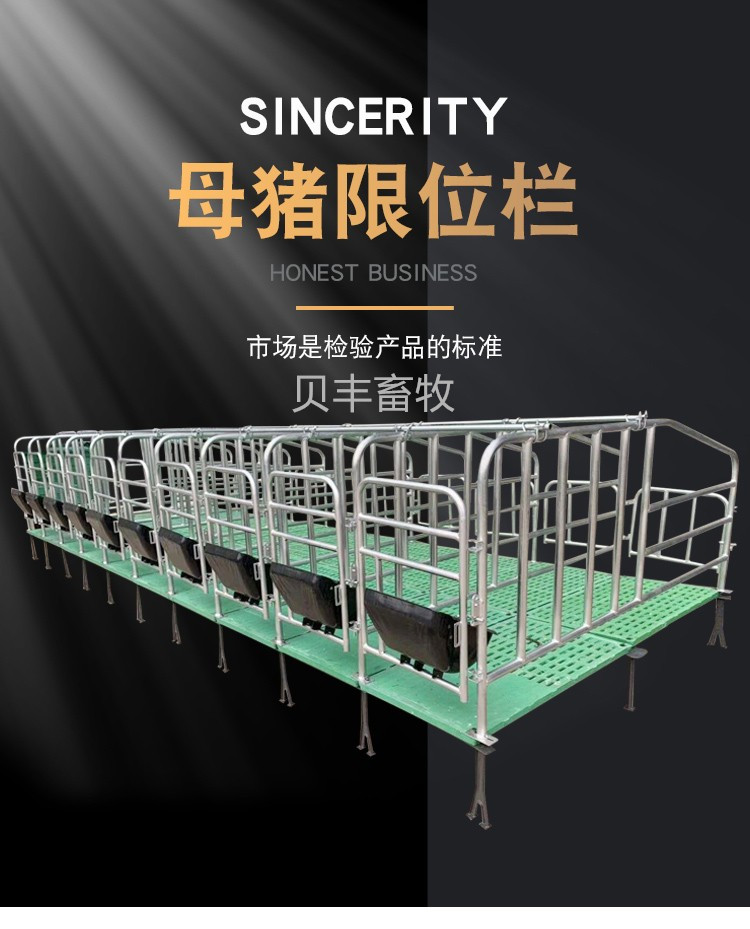 专卖现代养猪设备优质母猪限位栏生产型厂家热镀锌母猪定位栏母猪定位栏的出现使我们的养猪场管理工作得到了极大的改善,也降低了养殖场人员的投入成本。而且母猪定位栏占地面积小,便于饲养人员的喂养和清粪,减少了母猪之间的碰撞,是规模化养猪的一个产物。下面我们来讲解一下母猪定位栏的安装及优势。