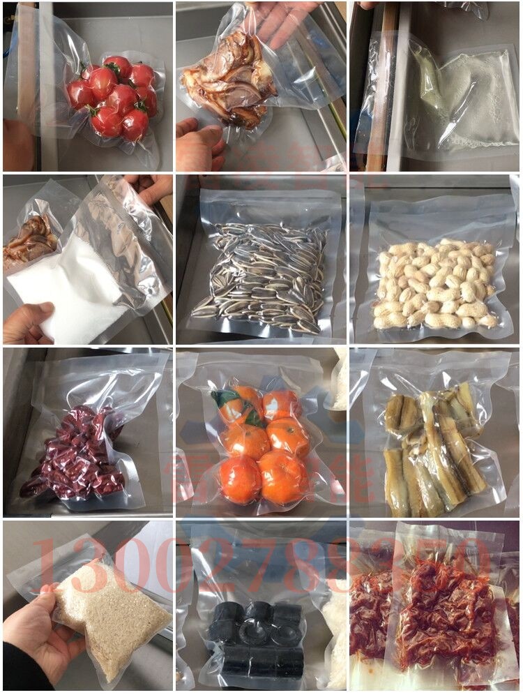 本系列真空包装机只须按下真空盖即自动按程序完成抽真空、封口、印字、冷却、排气的过程。经过包装后的产品防止氧化、霉变、虫蛀、受潮、可保质、保鲜而延长产品的储存限期。适用于各种塑料薄膜袋、复合膜袋、铝箔袋的真空包装。对各种肉制品、禽产品、酱菜制品、海产品、大蒜制品、山野菜、粮食、医药、生物制品、电子元件等各种固体、粉状物、半流体进行真空包装,达到隔氧保鲜延长产品的保质期,提高产品档次,咨询:130--0278**8350