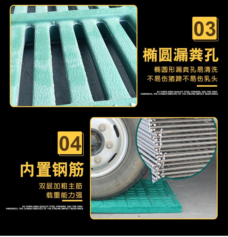 3:漏粪板的使用让一年四季中都可以具有充分的通风,减少了夏季病原微生物的积累,具有耐磨、耐腐蚀、抗渗透等优点。