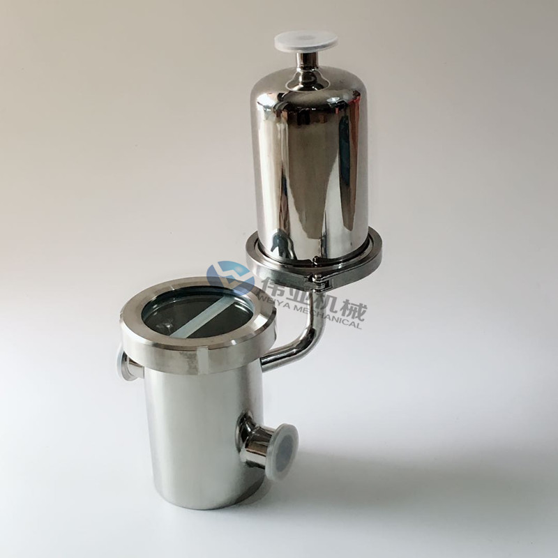 空气阻断装置的优点: 1、一体化设计,可以跟贮罐、设备连接,装置内部带有翘板式止回装置; 2、液体排放均在隔断装置内部,无溅液风险,不会产生二次污染; 3、带试镜观察窗可以观察内部工作情况、且便于维修; 4、采用304不锈钢制作,,垫片采用四氟或硅橡胶符合药品生产要求; 5、系统抽真空时止回装置因带有硅胶垫,能将设备排水管道和下水道隔离。 6、地漏本身带有水封,符合新版GMP及洁净地漏的所有要求。 空气阻断装置的使用地点: 1、配料罐 2、灭菌柜 3、胶塞、铝盖清洗机 4、冻干机 5、清洗机 6、水系统储存罐 7、CIP清洗站