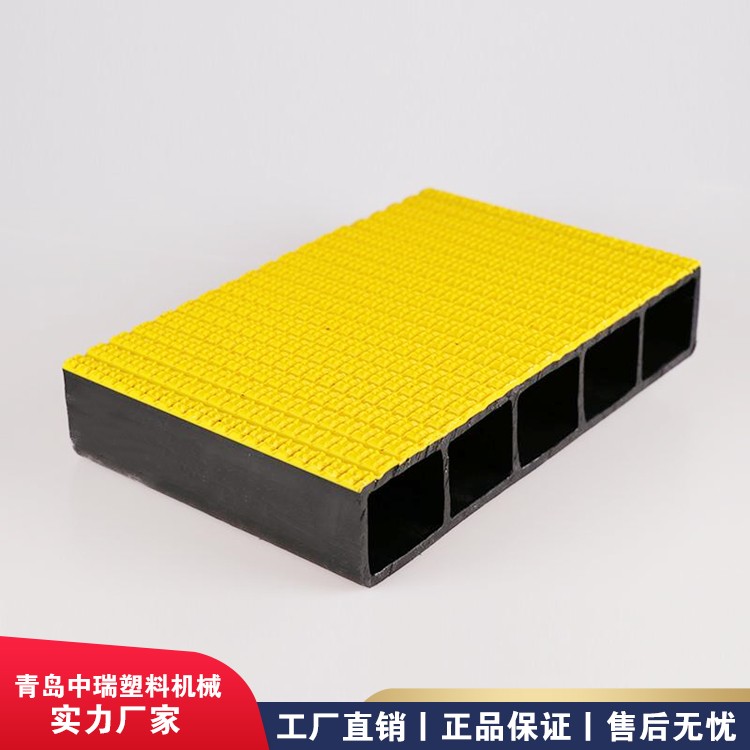 PE海洋踏板生产线,采用高效高产的单螺杆挤出机及共挤工艺,加长的定型台冷却及在线压花等工艺一次性成型,设备设计先进,配置高档,可靠性强!海洋踏板,是以高密度聚乙烯为主要原料,通过挤出工艺加工而成,一种新型的环保产品。产品整体一次成型、无缝,可以根据实际需求或工程设计,在其他金属或塑胶配件的辅助下进行连接、固定、组合、安装成各式形状。