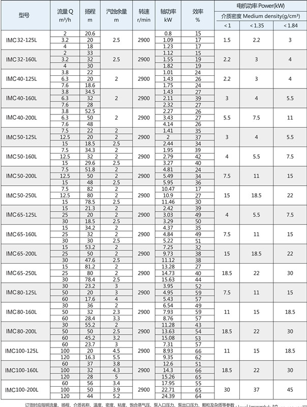 6、泵的绝大多数零部件可与IMC系列磁力泵互换,泵的性能与IMC系列相同;
