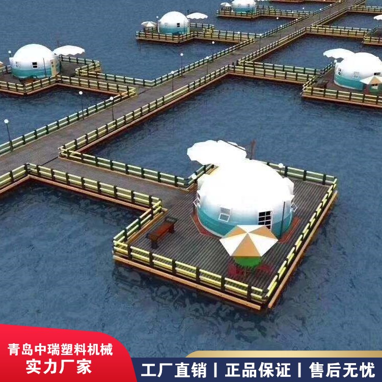 该机组采用双机共挤挤出工艺,一次成型,可生产不同规格颜色的产品,产品可应用于,渔业养殖,水上观光,浮桥,码头等。