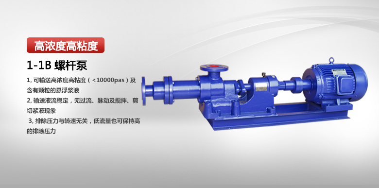 I-1B螺杆泵是一种单螺杆式输送泵、它的主要工作部件是偏心螺旋体的螺杆(称转子)和内表面呈双线螺旋面的螺杆衬套(称定子)。其工作原理是当电动泵轴转动时,螺杆一方面绕本身的轴线旋转,另一方面它又沿衬套内表面滚动,该型泵是单螺杆式容积回转泵,该泵利用偏心单螺旋的螺杆在双旋衬套内的转动,使浓浆液沿螺旋槽由吸入口推移至排出口,实现泵的输送功能。