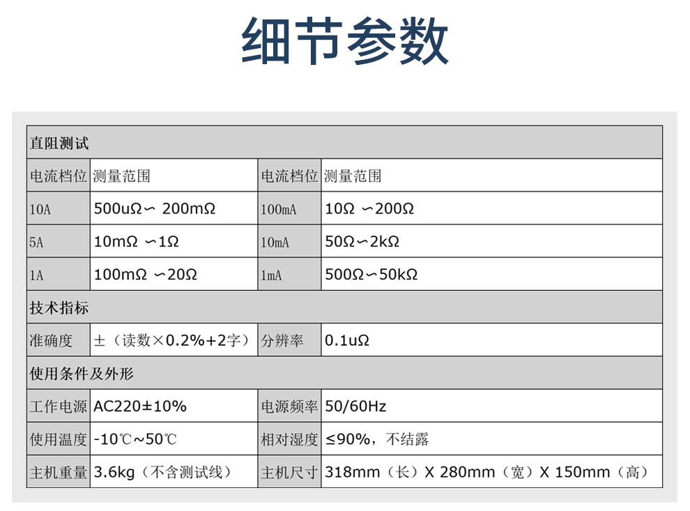 2. 量程宽(500uΩ~50kΩ),精度高(准确度可达0.2级)。
