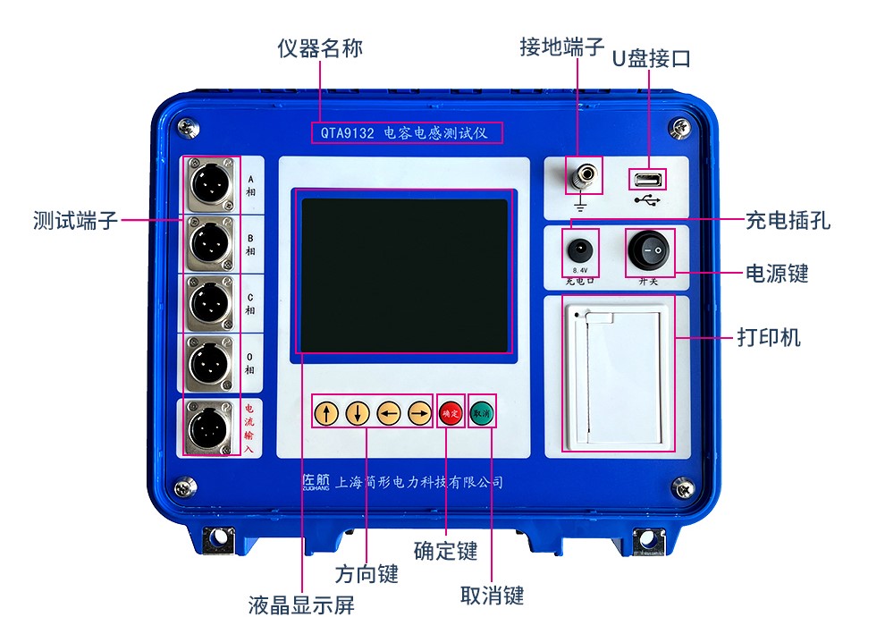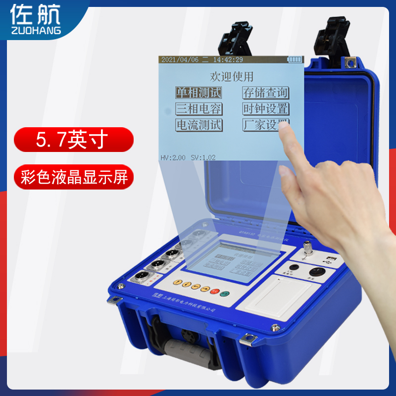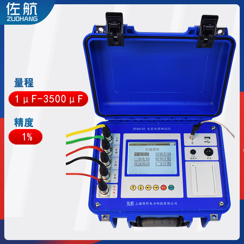 佐航QTA9132变压器电容电感测试仪采用高精度、大开口钳形电流互感器进行电流测量,内置大容量锂电池,使用异频抗干扰电源输出,测试精度高、数据稳定,具有极强的抗干扰能力,能在强磁场环境中进行测试而精度不受影响,是一款高性能、便携式专用补偿电容器测试仪。仪器不仅能测试单相电容器,还具有三相电容器测试功能,针对不同联结方式的三相电容器组进行一键测量,简单方便。同时仪器还可测试各种电抗器、电阻器,并且仪器还可以单独进行电流测试。