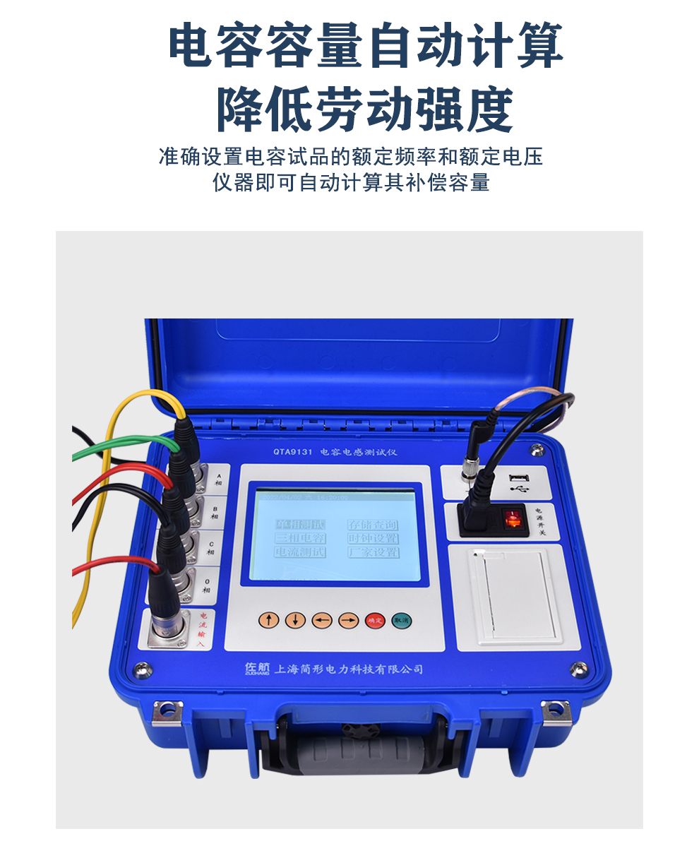 准确设置电容试品的额定频率和额定电压,仪器可自动计算电容器的补偿容量,减少现场人员计算量。