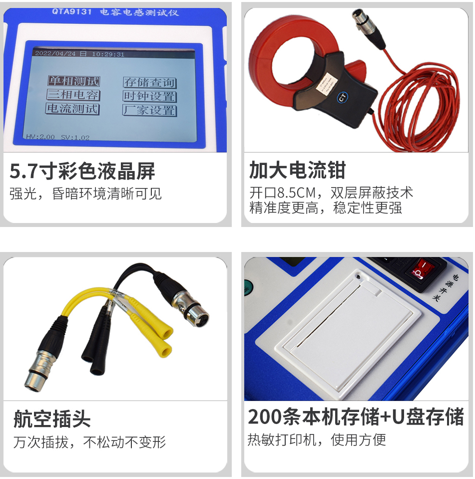 佐航QTA9131电容电感测试仪采用高精度、大开口钳形电流互感器进行电流测量,使用异频抗干扰电源输出,测试精度高、数据稳定,具有极强的抗干扰能力,能在强磁场环境中进行测试而精度不受影响,是一款高性能、便携式专用补偿电容器测试仪。仪器不仅能测试单相电容器,还具有三相电容器测试功能,针对不同联结方式的三相电容器组进行一键测量,简单方便。同时仪器还可测试各种电抗器、电阻器,并且仪器还可以单独进行电流测试。