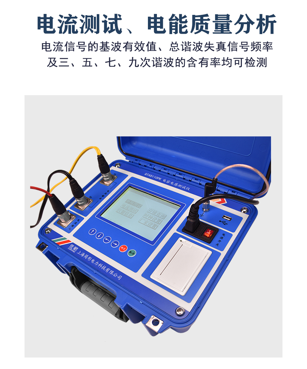 使用仪器钳形电流互感器可单独用于电流检测,可检测电流信号的基波有效值、总谐波失真、信号频率及三、五、七、九次谐波的含有率,从而对电流信号进行简单的电能质量分析。