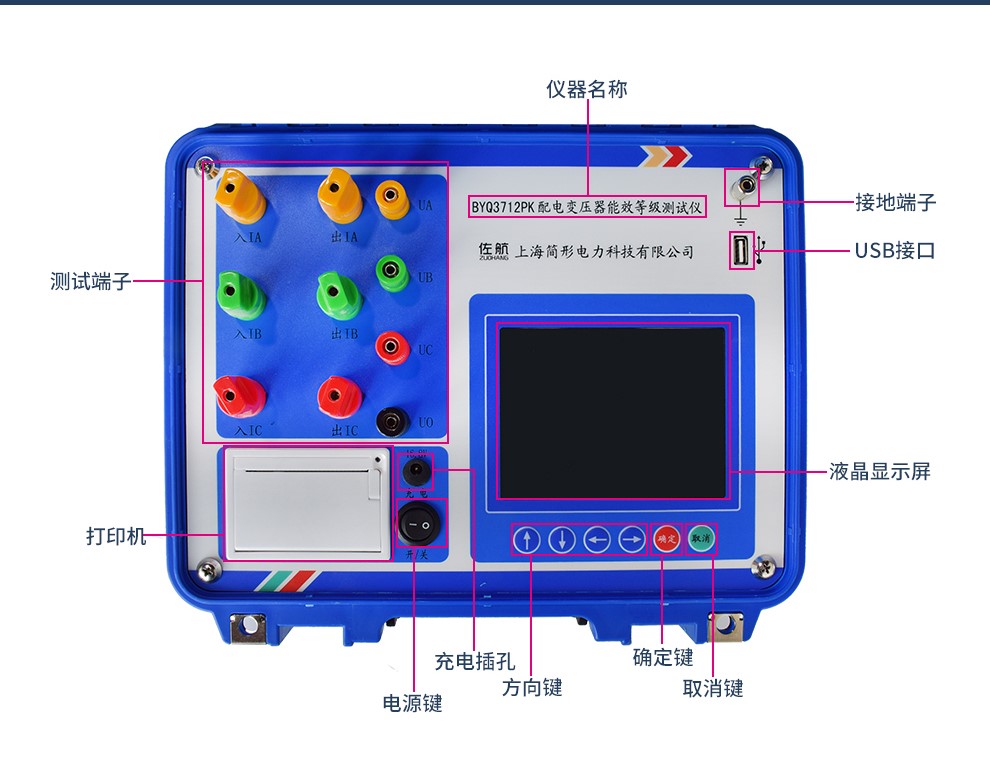 仪器可对10kV配电变压器的能效等级进行准确的测量与判断,并且对应能效等级,油浸式变压器损耗可测量到S22(电工钢带)和SH25(非晶合金);干式变压器损耗可测量到SCB18(电工钢带)和SCBH19(非晶合金)。