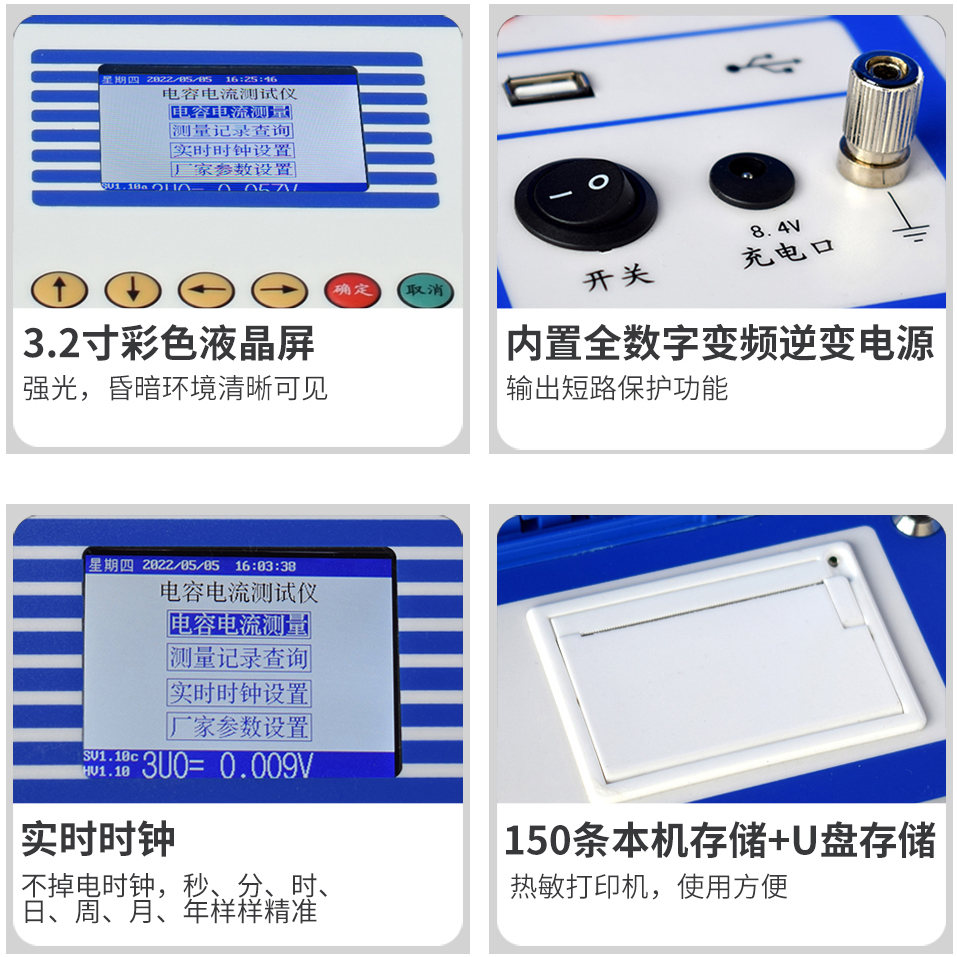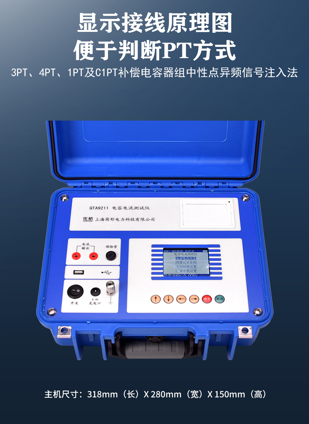 2 支持3PT连接方式、两种4PT连接方式、1PT连接方式现场电容电流测量,以及对现场4PT连接方式测量不准的情况而提出的电容器组中性点异频信号注入法。