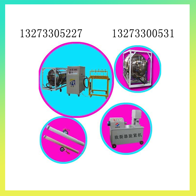 二氧化碳气体致裂设备,欢迎来电了解详情——1-3-2-7-3-3-0-5-2-2-7,包括杜瓦罐、二氧化碳增压装置和致裂器充装架,其特征在于:所述杜瓦罐上设有自动放气阀;所述二氧化碳增压装置包括带有进液口和出液口的增压泵、制冷压缩机、控制器和操作面板,所述增压泵的进液口与杜瓦罐的自动放气阀管道连接,所述增压泵包括增压泵头和设置在增压泵头底部的伸缩缸,所述伸缩缸内设有出液止回阀;所述致裂器充装架一端设有与所述增压泵出液口管道连接的充装管,所述充装管上连接有充装头,所述充装头的上部设有紧固螺栓,紧固螺栓)与充装头相配合固定致裂器充气头,所述致裂器充装架另一端设有滑轮传送致裂器。
