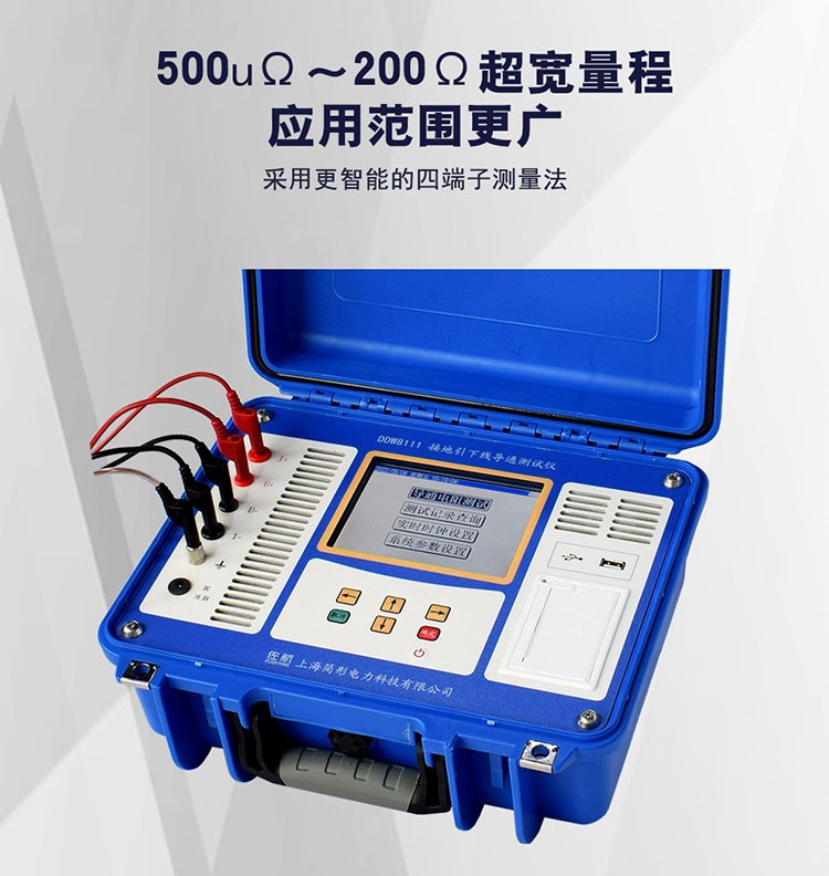 DDW8111 接地引下线导通测试仪是专门用于接地装置的电气完整性测试的一款创新型产品,其各项技术指标均达到或优于相关标准要求。该产品测试速度快、准确度高,内置大容量锂电池,体积小巧,便于携带。