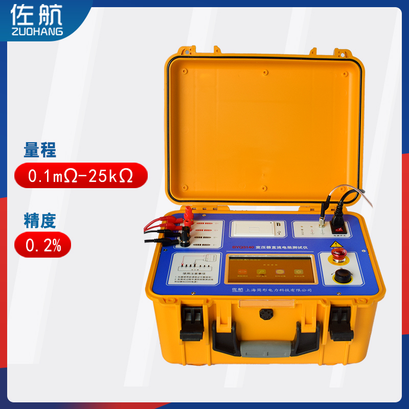 对于电力系统来讲,变压器是系统中核心设备,因此变压器的长期、可靠运行关系到整个系统的稳定性和可靠性。变压器的直流电阻是变压器制造中半成品、成品出厂试验、安装、交接试验及电力部门预防性试验的必测项目,能有效发现变压器线圈的选材、焊接、连接部位松动、缺股、断线等制造缺陷和运行后存在的隐患。为了满足变压器直流电阻快速测量的需要,我公司利用自身技术优势研制了佐航BYQ3140变压器直流电阻测试仪。该仪器屏幕采用真彩色大屏幕高分辨率液晶显示屏,触控加飞梭旋钮操作,方便现场使用。具有中文菜单提示功能,操作简便直观,测试速度快,准确度高,量程宽。