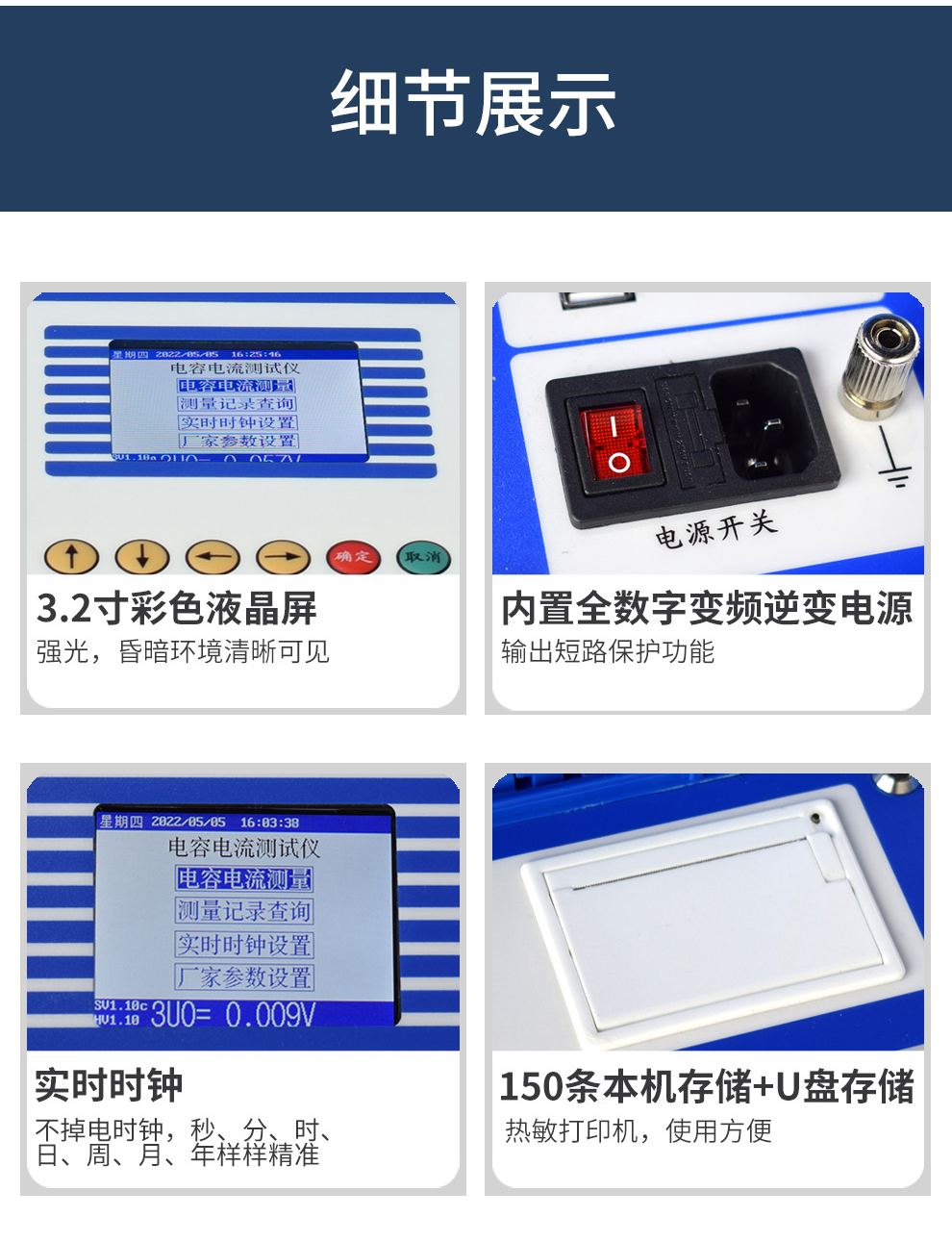 2 支持3PT连接方式、两种4PT连接方式、1PT连接方式现场电容电流测量,以及对现场4PT连接方式测量不准的情况而提出的电容器组中性点异频信号注入法。