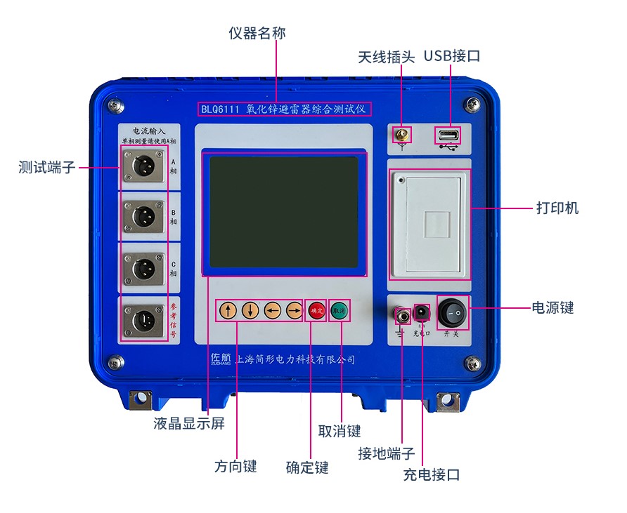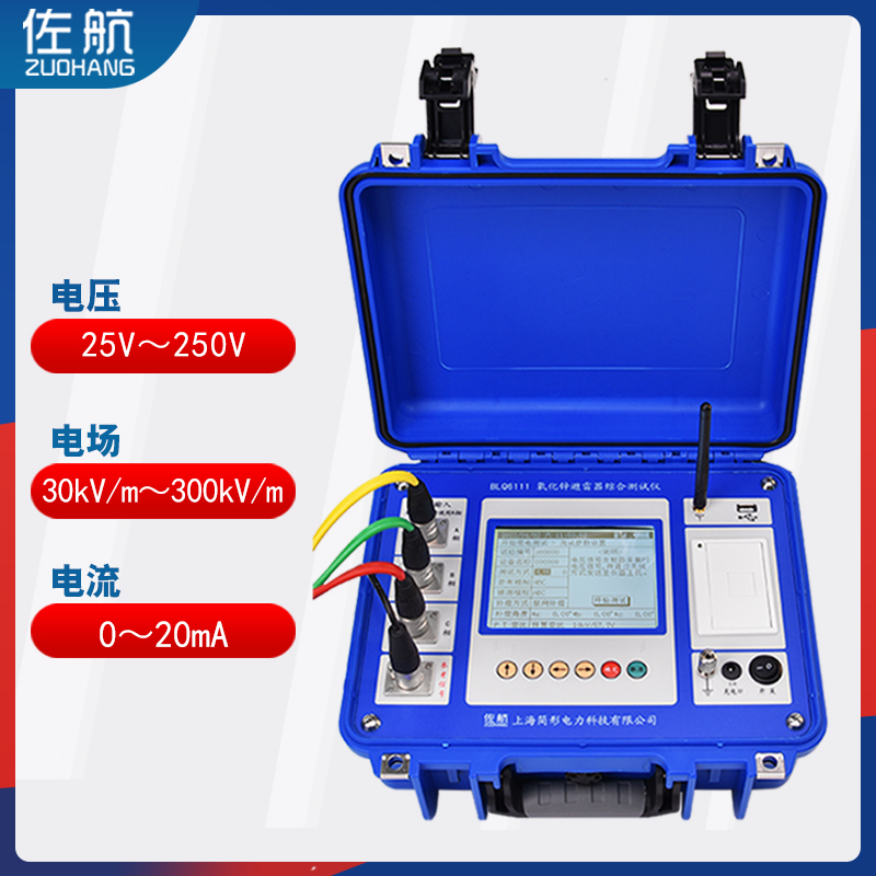 氧化锌避雷器综合测试仪用于检测氧化锌避雷器(MOA)的各相电气性能。该仪器适用于各个电压等级的氧化锌避雷器的现场带电检测以及停电状态下试验室做的出厂和验收试验。通过测量全电流及阻性电流等参数,可以及时发现氧化锌避雷器内部绝缘受潮和阀片老化等危险缺陷。