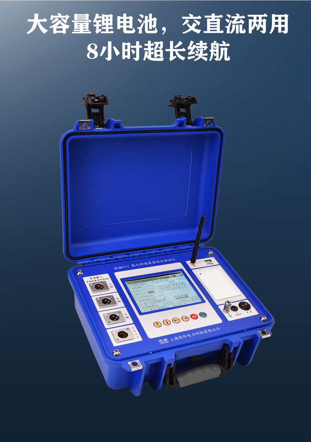 5 可同时测量三相氧化锌避雷器的电气参数,并可自动补偿相间干扰;也可单相测量,支持B相接地的PT二次电压作为参考电压;当被测相与参考电压相别不同时,可自动计算补偿角度。