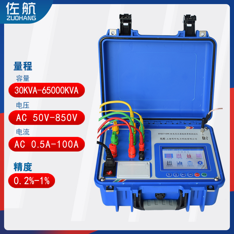 仪器可对配电变压器的容量和型号进行判断,同时显示变压器阻抗电压和折算到额定温度、额定电流下的负载损耗。