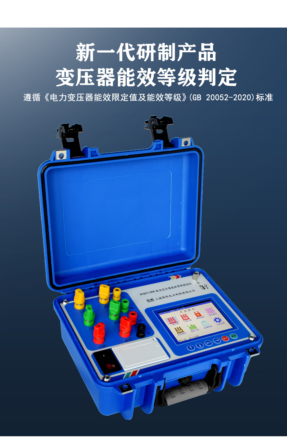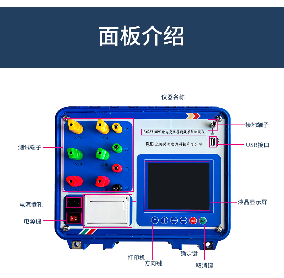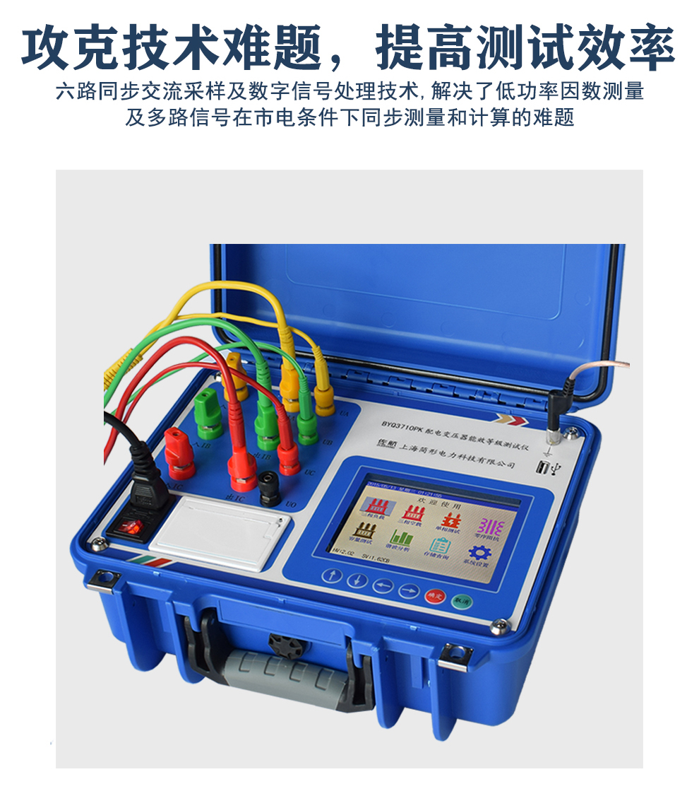 仪器可对10kV配电变压器的能效等级进行准确的测量与判断,并且对应能效等级,油浸式变压器损耗可测量到S22(电工钢带)和SH25(非晶合金);干式变压器损耗可测量到SCB18(电工钢带)和SCBH19(非晶合金)。