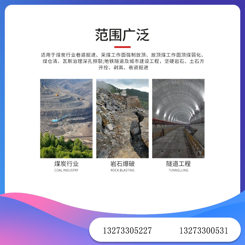 1.安全性:在静态液压环境下可控制性的工作业,不会像致裂和其它冲击性撤除、凿岩设备那样产生一些风险危险,无需采取杂乱的安全措施。