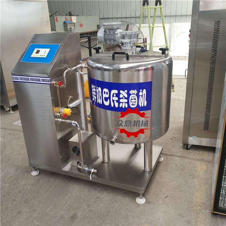 4.均质完成后通过管道和奶泵进入牛奶杀菌机杀菌,杀菌罐的温度和时间可以自己进行调节(一般的杀菌温度是85度左右时间是30分钟)。