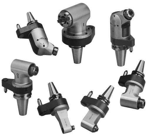 角度铣头是为在加工**上应用而设计的,可自动从叨库传送到机床主轴或从主轴送回到叨库。所有控制系列铣头,输入轴都集成有锥度,以保证**刚度。定位环和定位块带动定位销,可以旋转 3600 以优化角度定位。TCU 铣头上的叨具可以回转900。当铣头从机床主轴上卸下来时,用一个锁紧销防止驱动锥体转动。