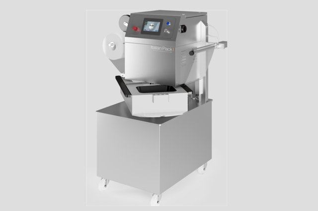 机器配置的旋转台可以减少停机时间,允许从一侧同时装载和卸载托盘,同时包装周期在另一侧的腔室中完成。